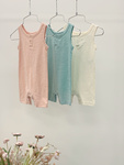 Crew neck, Sleeveless tank, hemmed armhole edges