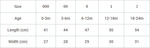 | Body Length (cm) | 50 | 51 | 52 | 53 | 54 | 55 |