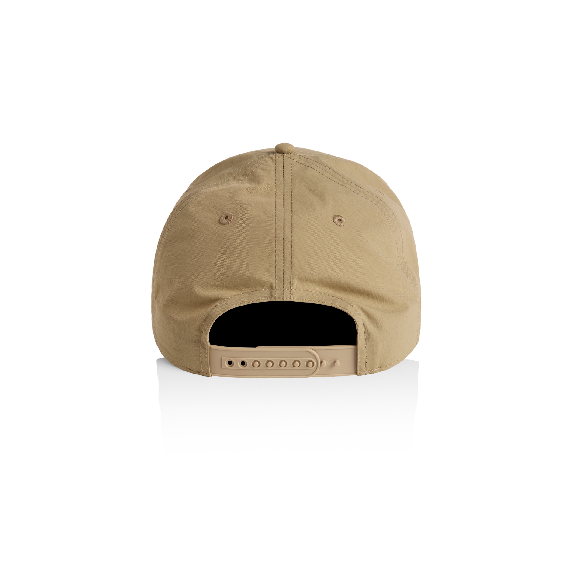 Single panel at front, quick dry fabric, plastic snapback, tonal under-peak lining