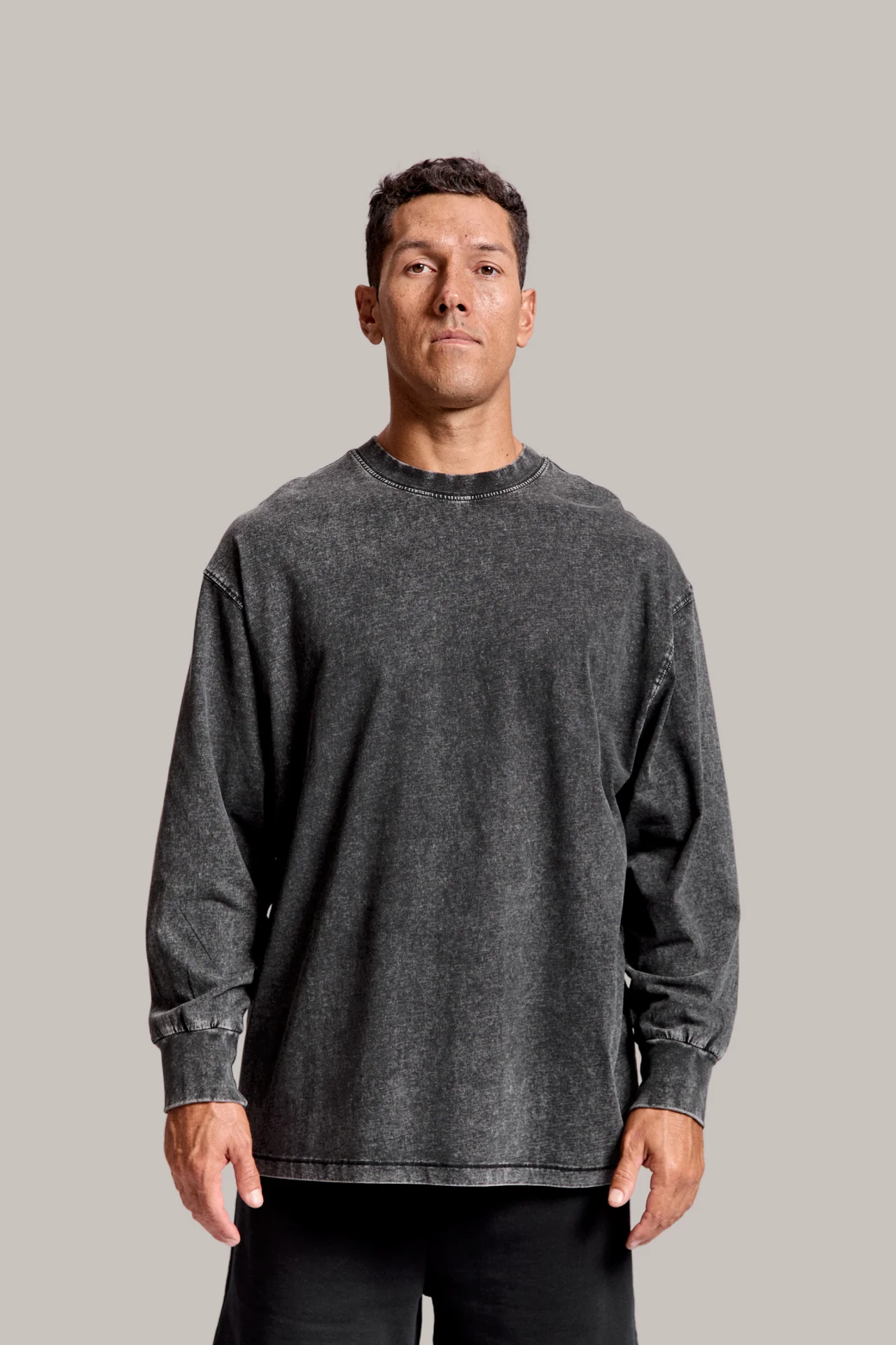 Pre-shrunk to minimise shrinkage, pullover crew, drop shoulder, cropped full length, crew neck, sleeve cuff and hem ribbing